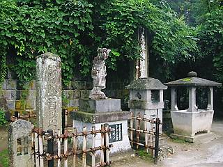 | 続いてまいりましたのは、会津藩主松平家墓所です。 会津武家屋敷から歩いて5分くらいでしょうか。 墓所の入口は比較的わかりやすいのですが、 墓所そのものは非常に行きにくい。 特に、容保公は最後の藩主だったから、 一番奥にあるのです! しかも、石畳の上を歩くのですが、 その石畳も古いので、凸凹しているし、 山道を歩いているような感じです。 さらに、道しるべも無いので、下手すると迷子になりそうな感じ。 何と言っても、雨の中歩いているので、 足場が悪すぎるし、 結構急な坂だし、 行くのに大変苦労しました。 が、何とか、容保公の場所まで辿り着くことができました。 ただ、人気が全く無いので、 非常に落ち着く場所ではありますね。 ただし、足を運ぶ時は、 天気であるのに限る、と思います。 というか、 ここまで足を延ばすほうが珍しい??って? バス通りに戻って院内から乗車しようと思ったのですが、 一度、武家屋敷の写真(入口)を撮っておきたかったので、 武家屋敷まで戻ってから、 会津武家屋敷前で三度、ハイカラさんに乗車です。 |