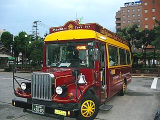 | 出発地、会津若松駅です。 駅前に建つ銅像は、白虎隊。 ここから、街中周遊バスハイカラさんに乗って旅は始まります。 一日乗車券(¥500)を購入して、バスの到着を待ちます。 30分間隔で運行しているので、 一周ぐるっと廻るのに時間を上手く使えば、 かなりの場所を廻ることが出来るでしょう。 |